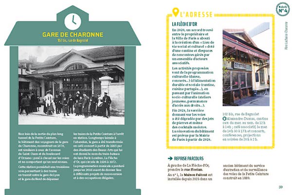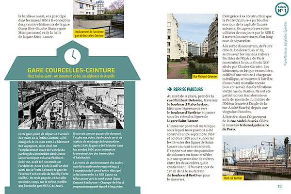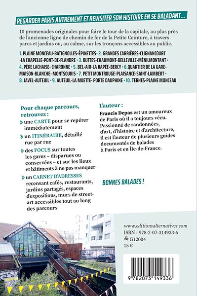 10 itinéraires pour découvrir Paris autrementLa Petite Ceinture est une ligne de chemin de fer à double voie de 32 km de long encerclant Paris à l'intérieur des boulevards des Maréchaux. Ouverte par tronçons de 1852 à 1869, elle fut d'abord dédiée au transport des marchandises avant de prendre en charge celui des voyageurs. La concurrence du métropolitain et de l'autobus entraînent progressivement sa fermeture. À partir de 2006, la Ville de Paris commence à racheter des friches à la SNCF pour les réhabiliter et les ouvrir au public, tout en constituant un couloir écologique de préservation de la flore et de la faune. Ce guide propose dix balades originales où le passé et le présent se rejoignent, d’un quartier à l’autre, dans les parcs et jardins, au plus près de l’ancienne ligne voyageurs, ou au calme sur les tronçons accessibles.