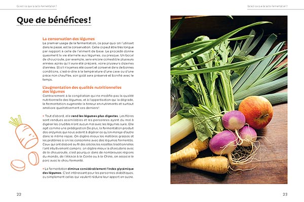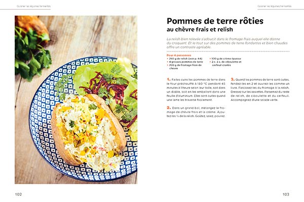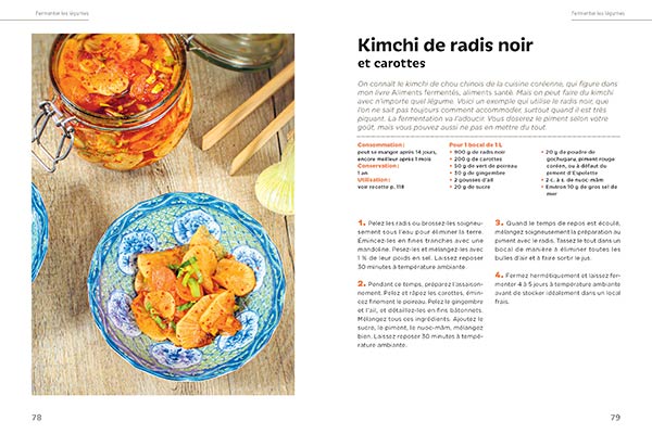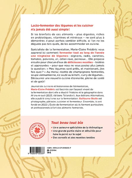 Lacto-fermenter des légumes et les cuisiner n’a jamais été aussi simple ! Si les bienfaits de ces aliments – plus digestes, riches en probiotiques, vitamines et minéraux – ne sont plus à démontrer, il peut parfois sembler difficile, si l’on ne les déguste pas tels quels, de les accommoder en cuisine. Spécialiste de la fermentation, Marie-Claire Frédéric vous apprend ici comment fermenter tout au long de l’année une vingtaine de légumes : oignons, radis, carottes, tomates, poivrons, ail, céleri-rave, poireaux… Elle propose ensuite pour chacun d’eux de délicieuses recettes – testées et approuvées – pour que vous ne vous posiez plus jamais la question : « Mes légumes sont prêts, et maintenant, j’en fais quoi ? » Au menu : risotto de champignons fermentés, soupe vietnamienne, riz sauté au kimchi, curry de légumes...
